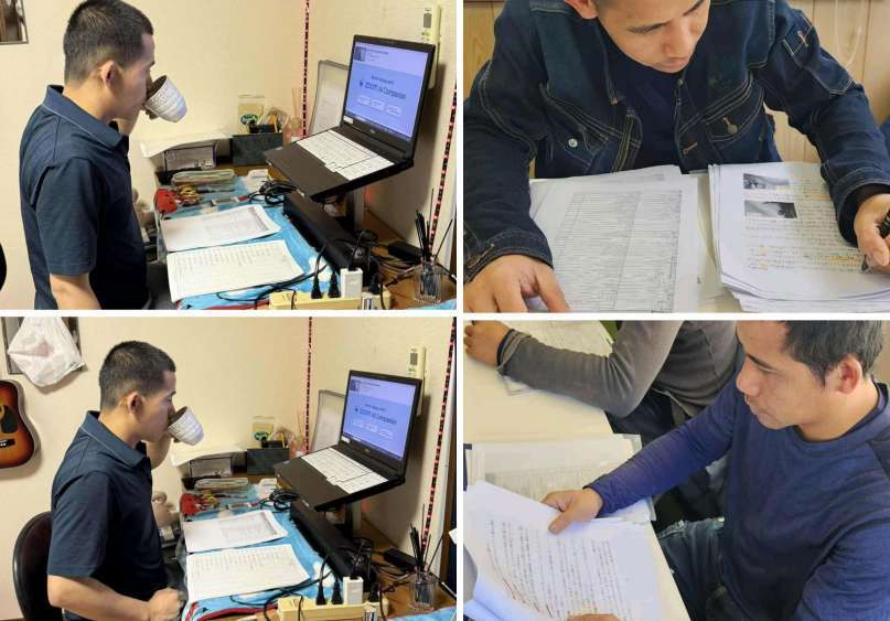 AM3時に起きてソファに座り、特定技能2号の試験勉強をしています。早起きしたので、仕事に行く準備も早めに始めました。仕事の休憩時間には、勉強した内容を復習しています。日本語はとても奥深くて難しいですが、会社が特定技能2号の勉強をサポートしてくれており、タガログ語での専門用語の語彙リストを配布してくれているので、理解できています。
