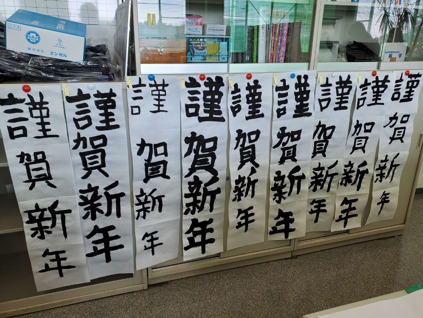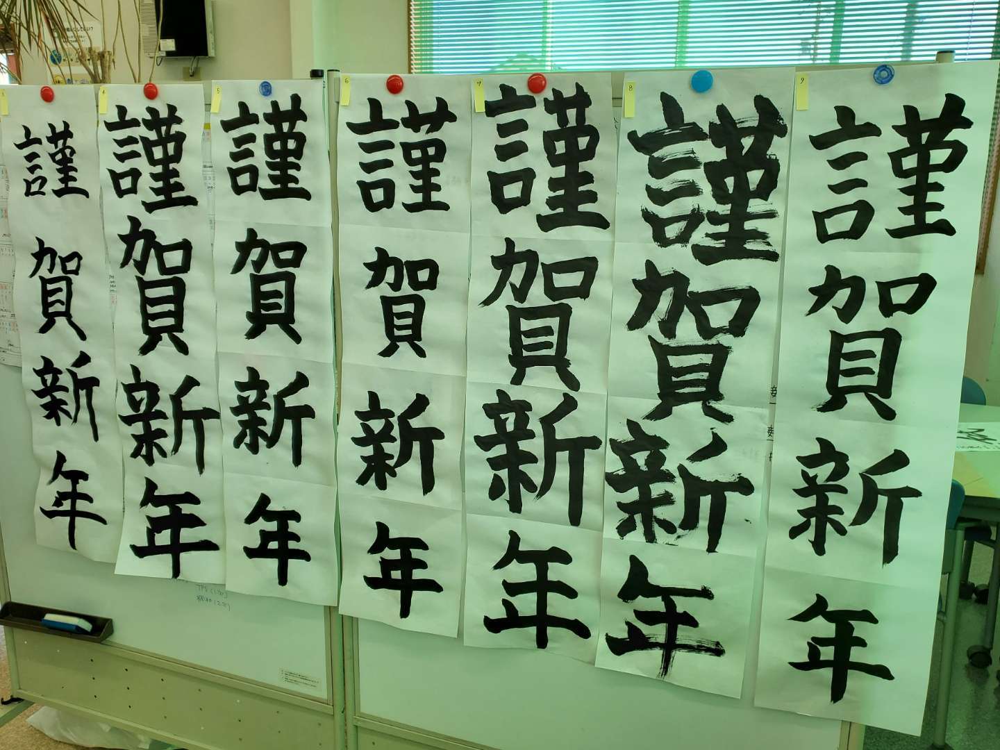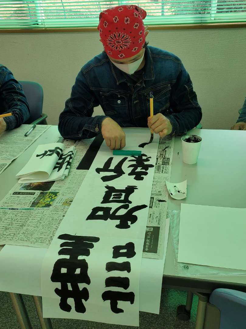 日本は、小学生の時に書道の授業があるので、慣れ親しんだ行事ですが、技能実習生は「難しい!」と言いながら、見本を参考に頑張って書いていました。何度も練習したり、見本に気を取られすぎて同じ文字を書いてしまったり、楽しそうでした。