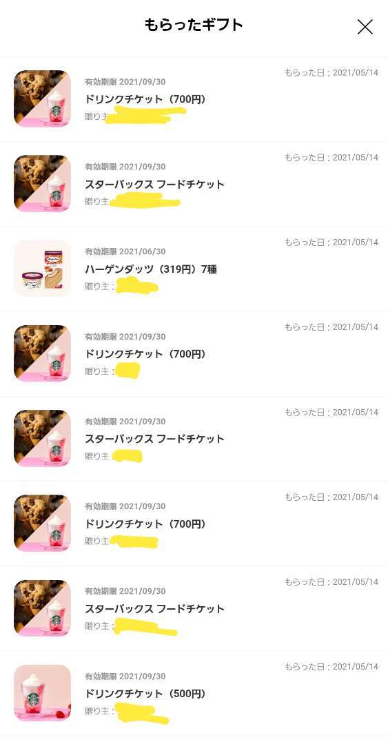 今年は会えない人からたくさんスタバギフトが届きました。