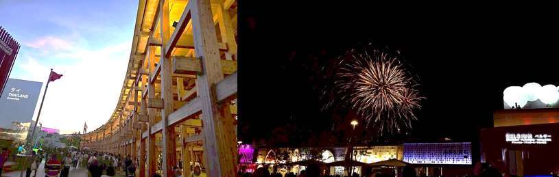 たくさんの人が「大屋根リング」上に集まり、夏の夜を彩る花火を見上げていました。
