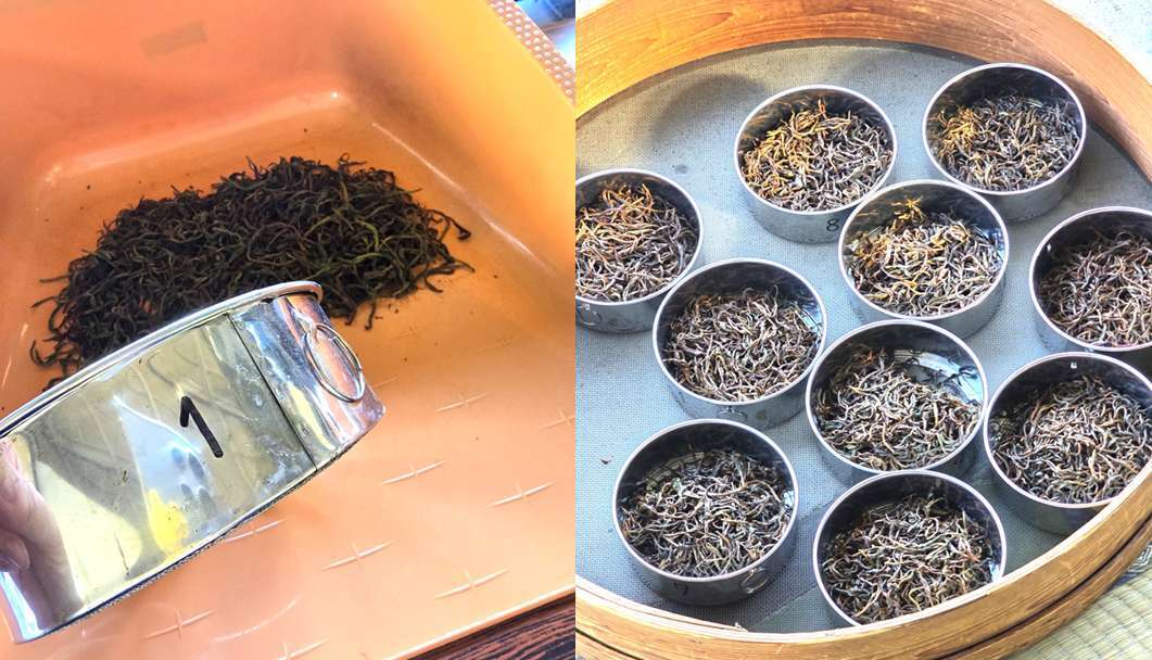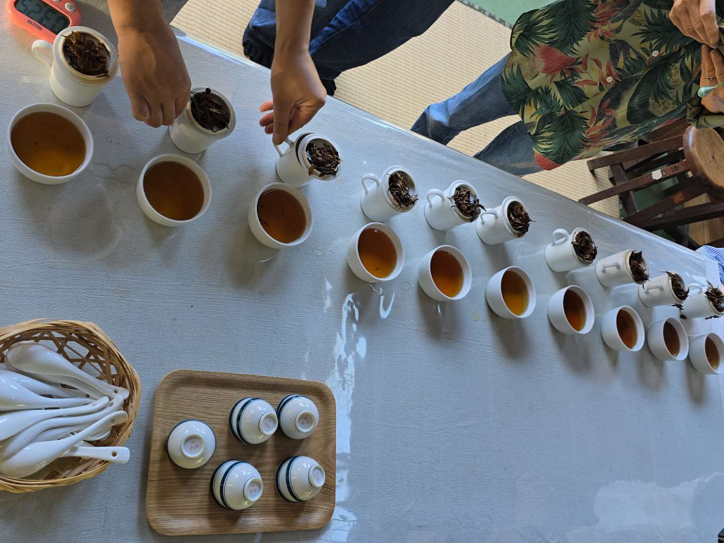 午前中に個々で揉んだ紅茶が出来上がったので、全員でテイスティングです。どの紅茶が一番おいしいかを投票で決めます。みんな同じように揉んでいたけれど、色や苦み、渋み、ものによって全然違っていました。不思議です。