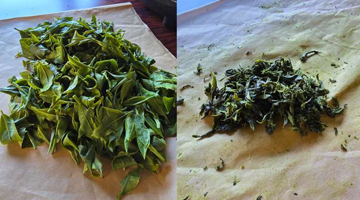 茶葉を揉み続け、気づけば手は茶渋色。揉みながらも少しずつ茶葉が発酵していくそうです。発酵させるために温度と湿度のある場所で休ませます。