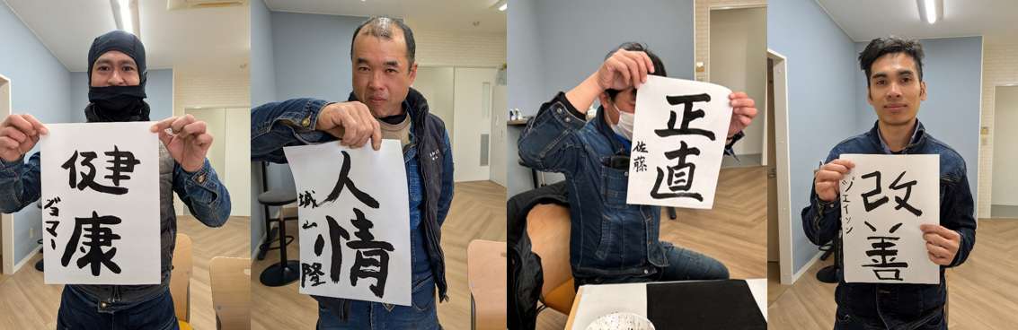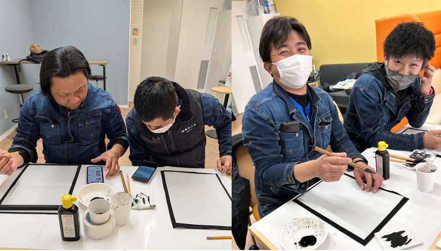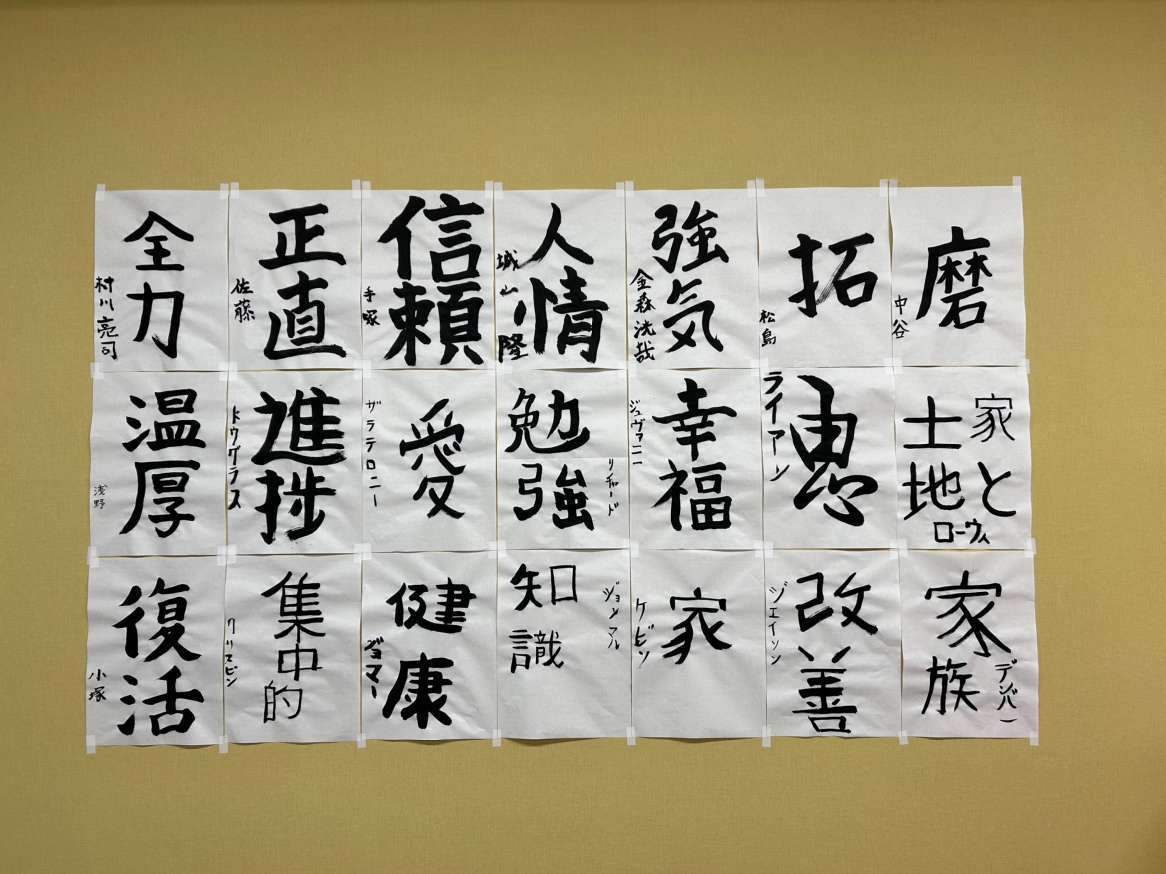 みなさん各々に文字の意味を調べ、練習したり一発書きだったり、スマホとにらめっこしての書初めとなりました。久しぶりの習字は日本人でも緊張します。