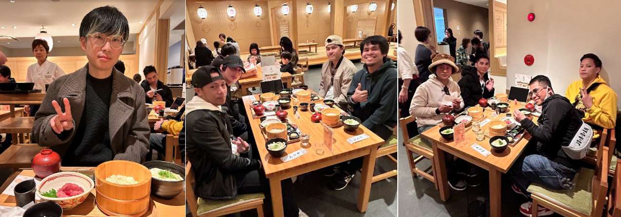 みんなの食べるスピードに置いて行かれないように必死で食べる総務や、松阪牛ローストビーフ丼が食べたい城山さん、写真回避のため怪しすぎる装いの松島くん、花粉症で鼻水だらだらの中谷さんなど、それぞれ楽しく美味しい昼食となりました。