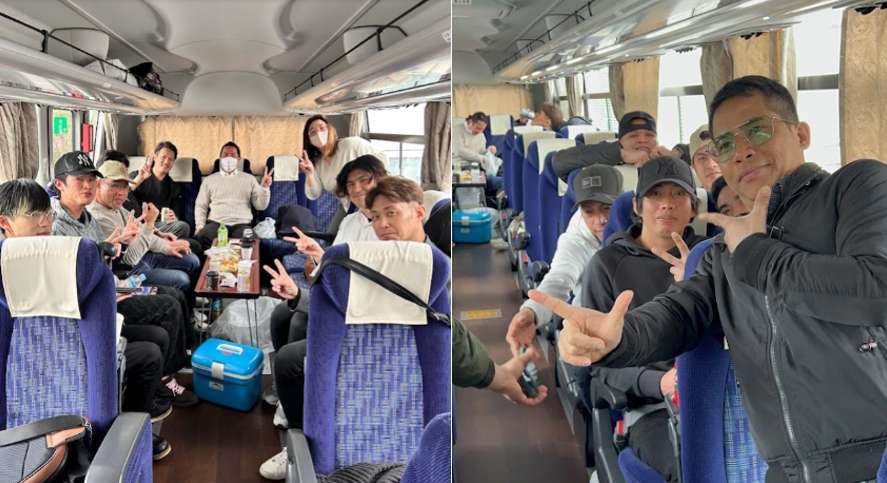 社員旅行らしい大型バスに乗り込んで出発です。