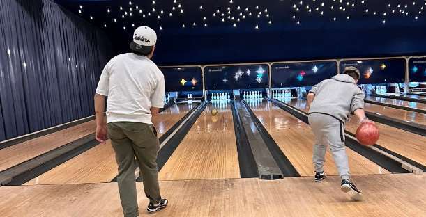 8チームに分かれ、チームの平均点と個人点を争います。実習生たちはボウリングが初めての人もいるようで、どんな結果になるのやら。