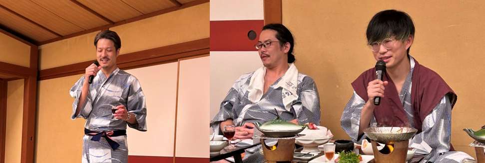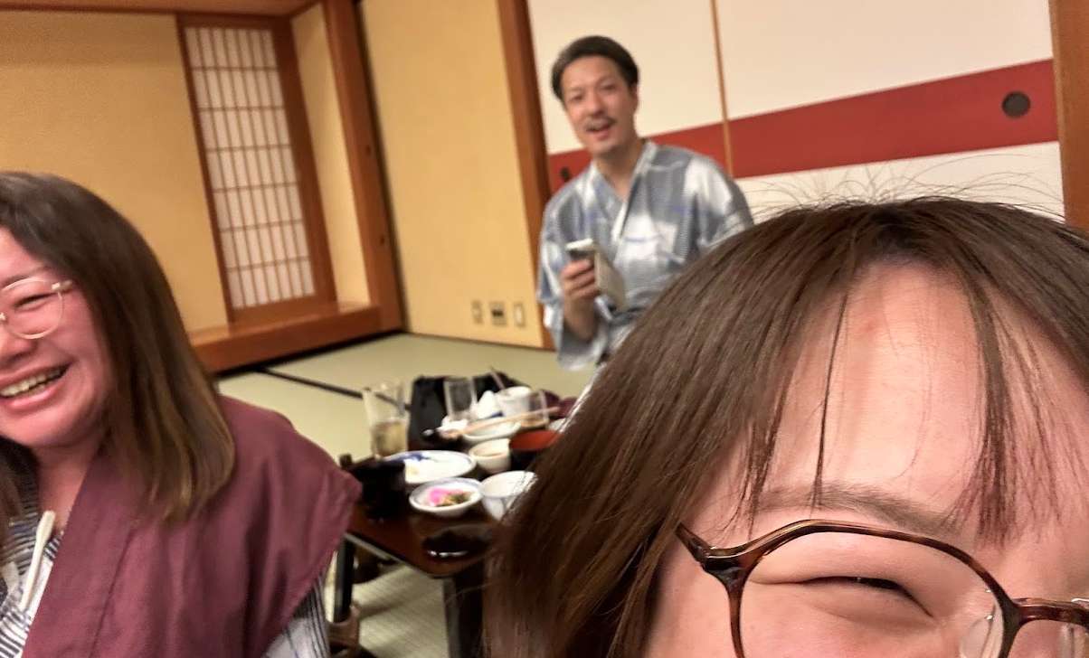 そして5割くらいはKさんのコンサートでした。綾香さんの三日月や、椎名林檎さんの丸の内サディスティックや他にも数曲を熱唱。歌が進むにつれてはだけてゆく浴衣。きわどい写真にならないようにうまく撮影しなきゃと頑張る総務。そんなコンサートの最中も進む宴会。